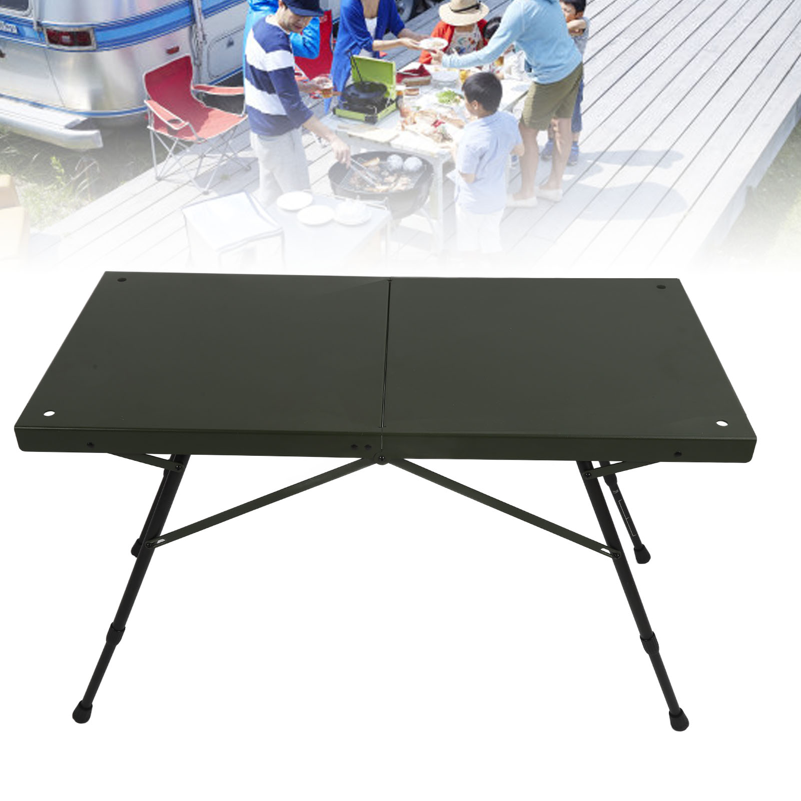 绿色40*80cm折叠露营桌 自由升降调节42-55CM高度 铝合金轻量化升降战术桌 自驾游野餐桌适合 YM3116240006811 G