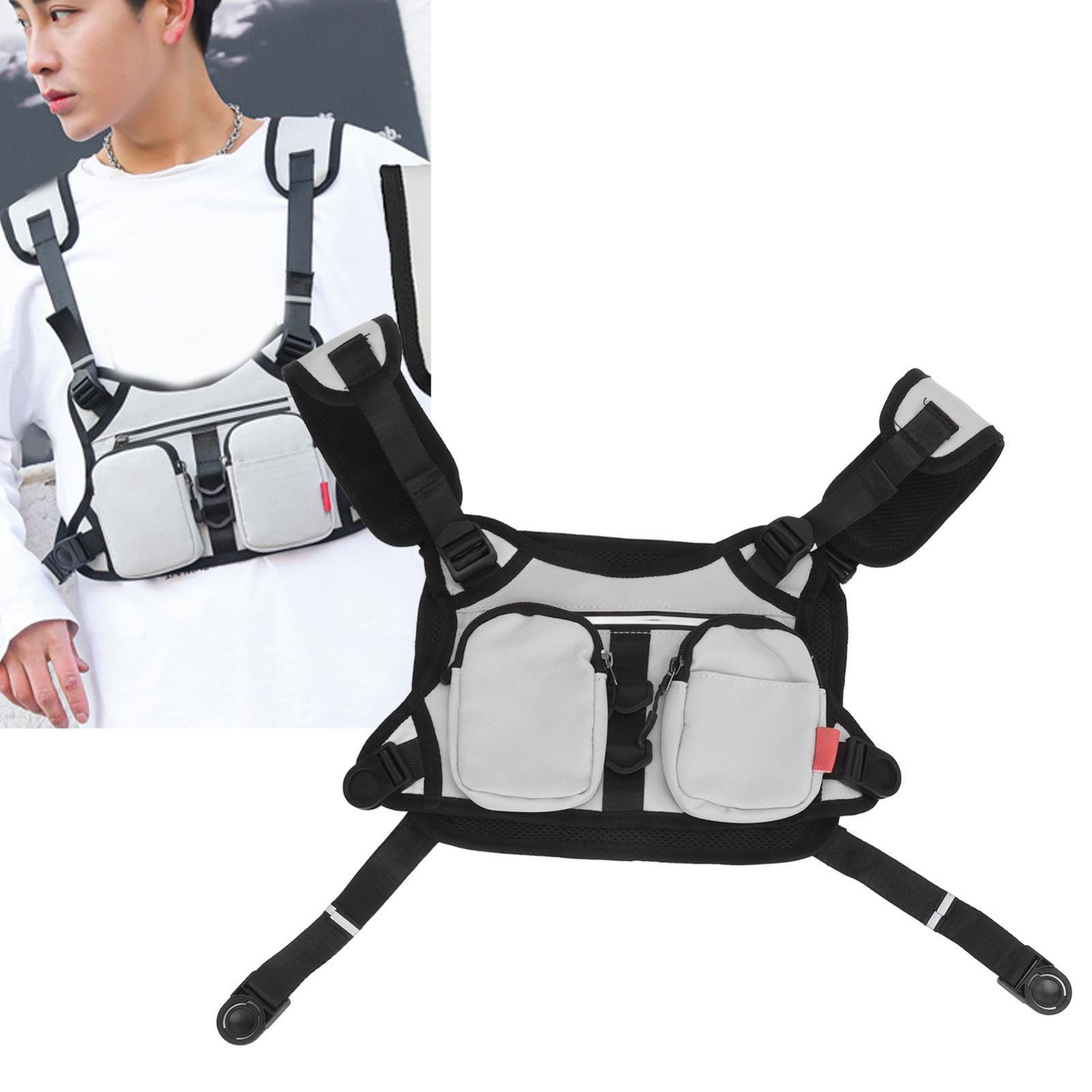 纯色反光马甲包男女跑步胸包街头潮流运动背包户外骑行包灰色 YM2719230146011 G