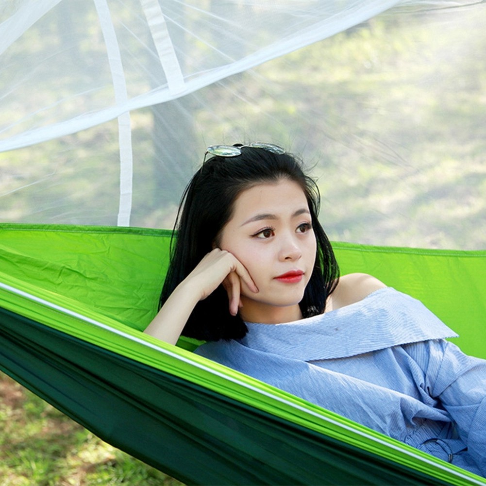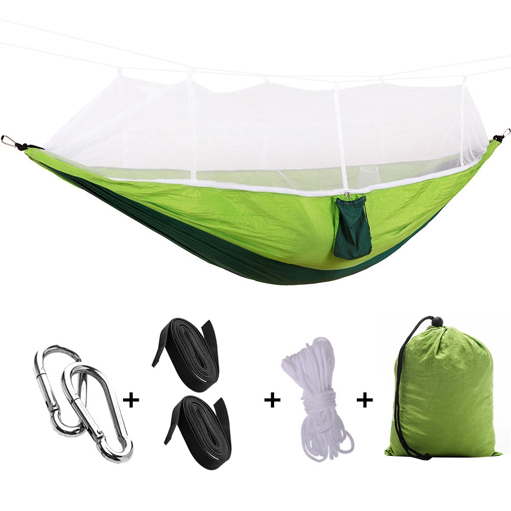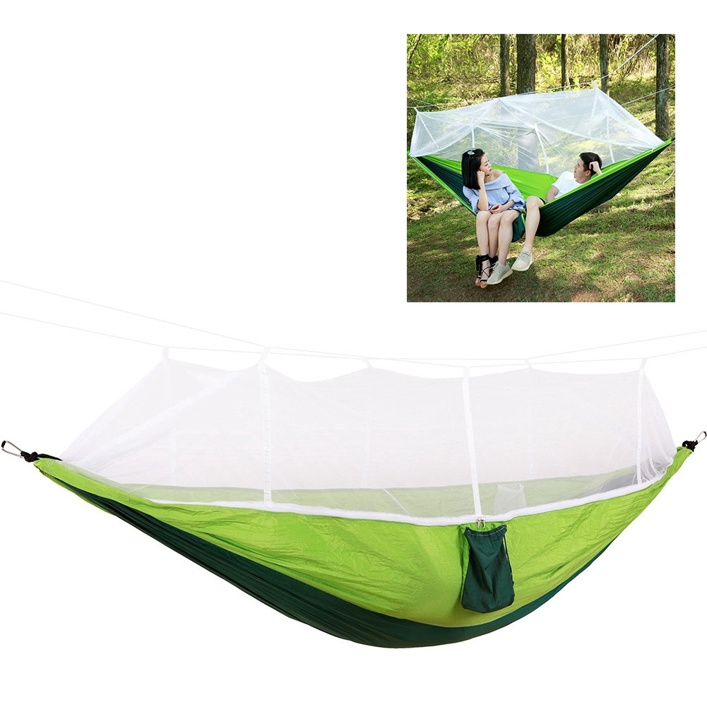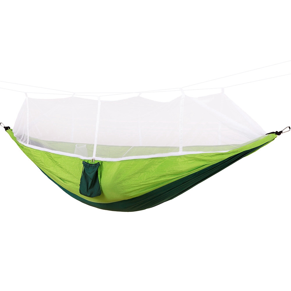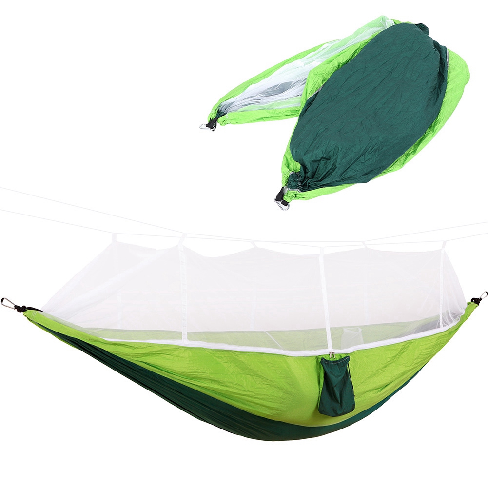 轻薄户外蚊帐吊床防侧翻 野外露营降落伞布防蚊虫带蚊帐秋千吊椅蚊帐果绿拼墨绿(白网)主图色260*140 YM3116200039211 K