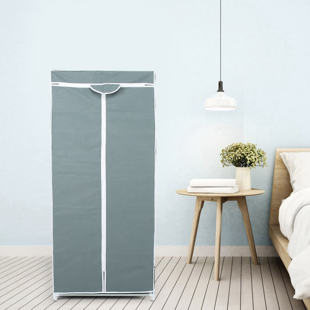 简易拉链式无纺布折叠衣柜加厚钢管钢架衣橱银灰色(超尺寸) YM3110190004412 G