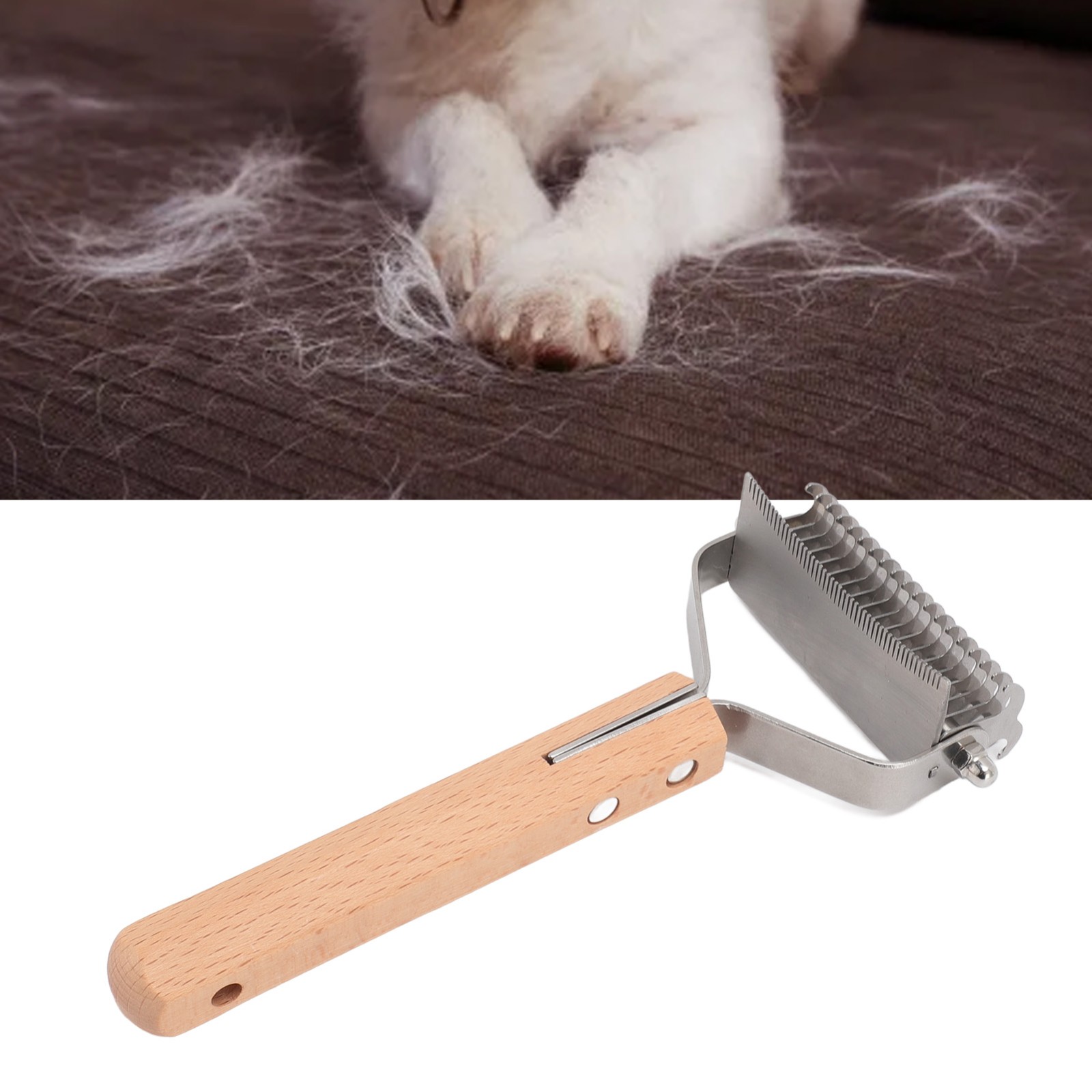 宠物开结梳 不锈钢双面开结耙 狗开结刀 猫梳子木柄宠物双面开结 两用 YM2110240022812 K