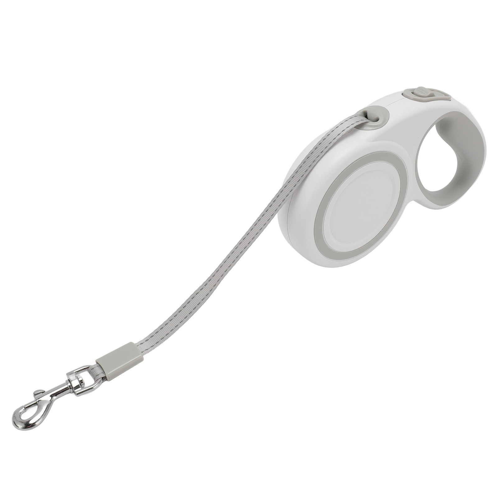 舒适可伸缩狗皮带 宠物自动伸缩牵引绳 发光遛狗绳 夜光牵引带 5米自动伸缩狗 灰白M YM2110240023413 K
