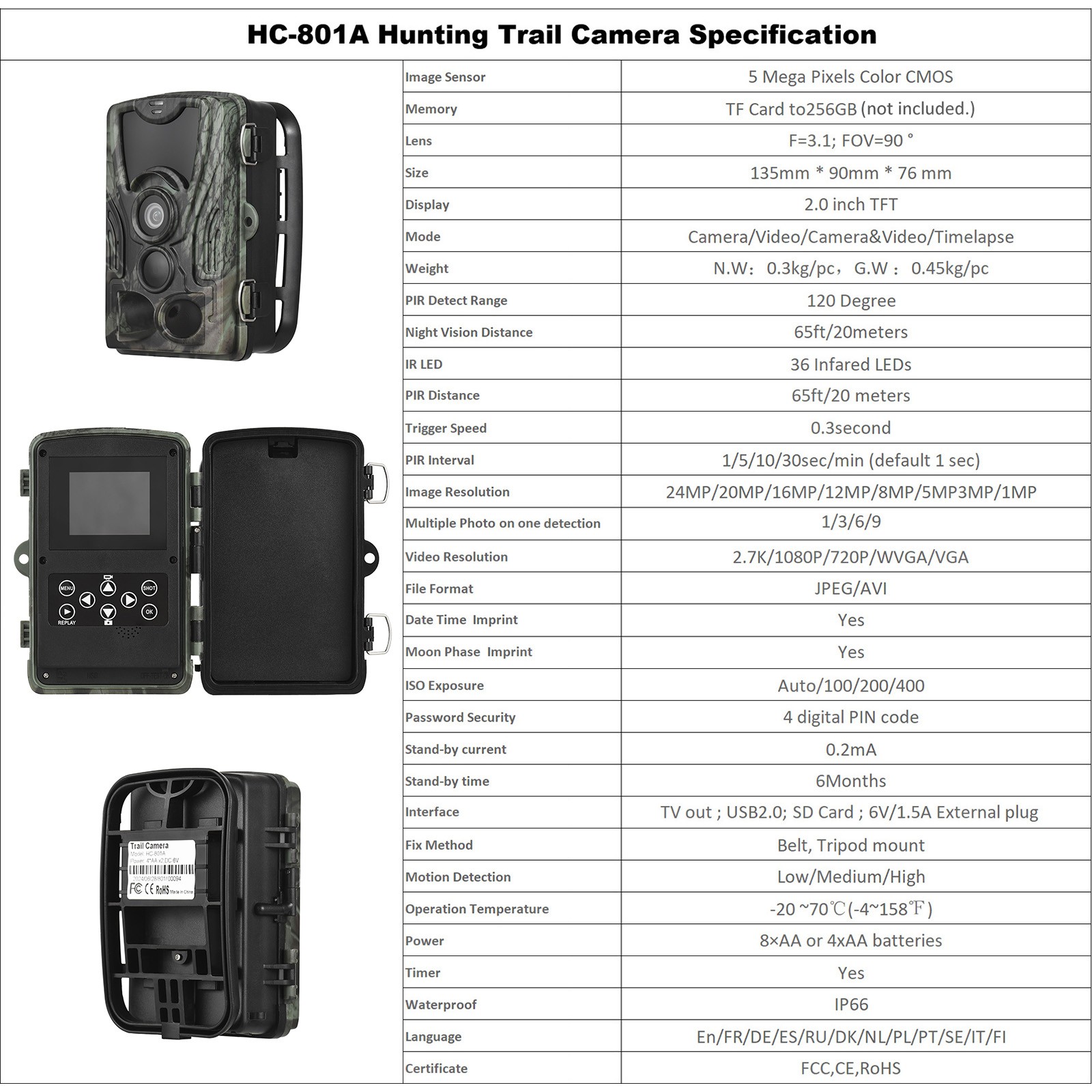 户外红外夜视追踪相机HC-801A户外相机 使用AA电池款 YMY292493-1 G