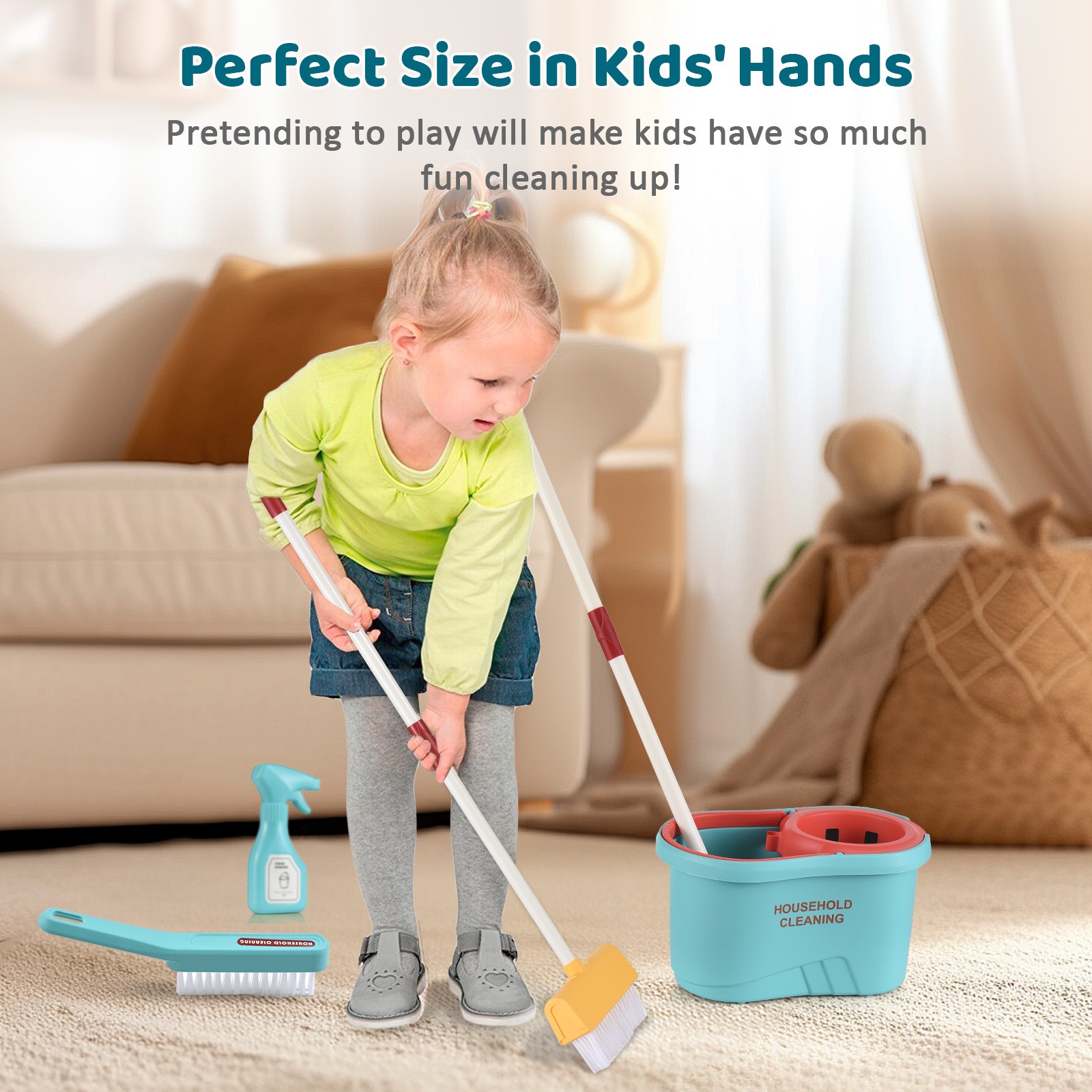 HJ611C 儿童仿真清洁套装玩具 带扫把 拖把 拖把桶 刷子等 YMMT3589 K